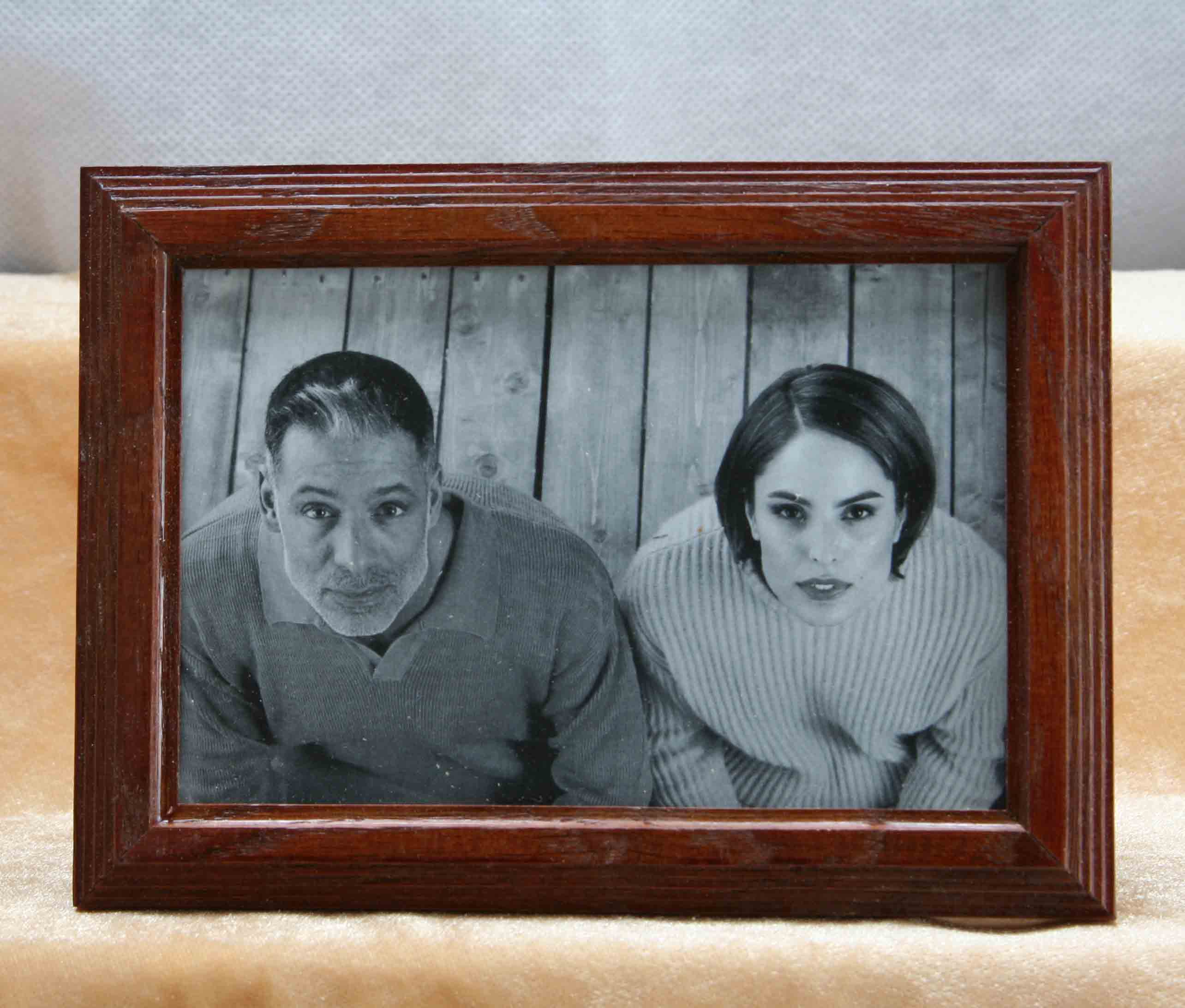 Рамка №1. Эта изысканная рамка по мотивам итальянской архитектуры, в виде ступенчатого прямоугольника, изготовлена из комбинации массива Сибирской сосны и Краснодарского дуба, придаёт восхитительно тёплое обрамление фотографиям любого сюжета и направления. Задняя опора горизонтальная и вертикальная, размер фото 10см х 15см, розниччная цена 798 рублей с НДС. Цена оптовых партий обсуждается. Доставка почтой, вес 430 грамм.